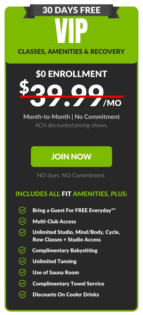 Free FIT add-on. Guest privileges are limited to FIT Amenities. All memberships are billed monthly to a checking account or credit card. An Annual Fee of $69.99 billed once per year in the member's second month of membership. Enrollment fee and taxes may apply. Choose your bank account to pay your Monthly Membership Dues and we’ll waive our one-time processing fee of $20.00. Plus SAVE $2.00 on your membership dues every month! 7-Day Satisfaction Guarantee. 30 day notice applies to all memberships. DRIPBaR is located in our Fit Factory Foxboro Location only. All Fit Factory members receive 10% Off DRIPBaR Services.