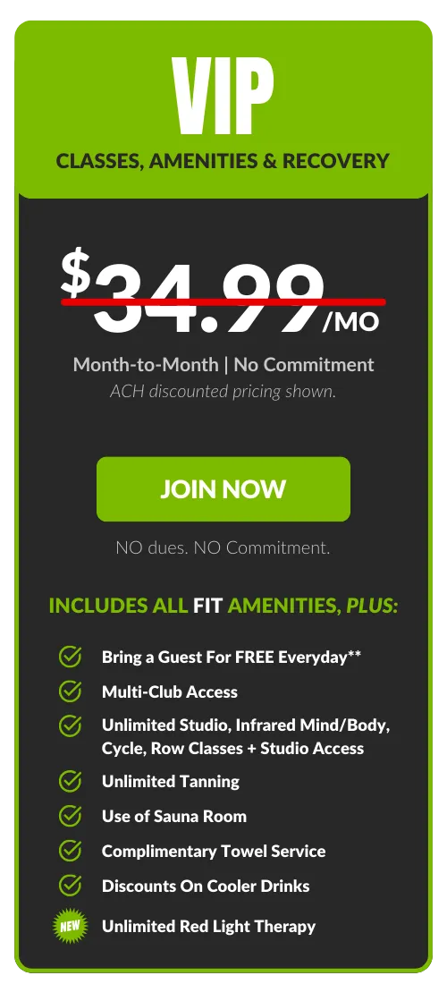 Free FIT add-on. Guest privileges are limited to FIT Amenities. All memberships are billed monthly to a checking account or credit card. An Annual Fee of $69.99 billed once per year in the member's second month of membership. Enrollment fee and taxes may apply. Choose your bank account to pay your Monthly Membership Dues and we’ll waive our one-time processing fee of $20.00. Plus SAVE $2.00 on your membership dues every month! 7-Day Satisfaction Guarantee. 30 day notice applies to all memberships. DRIPBaR is located in our Fit Factory Foxboro Location only. All Fit Factory members receive 10% Off DRIPBaR Services.